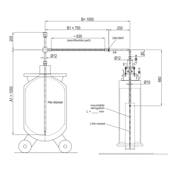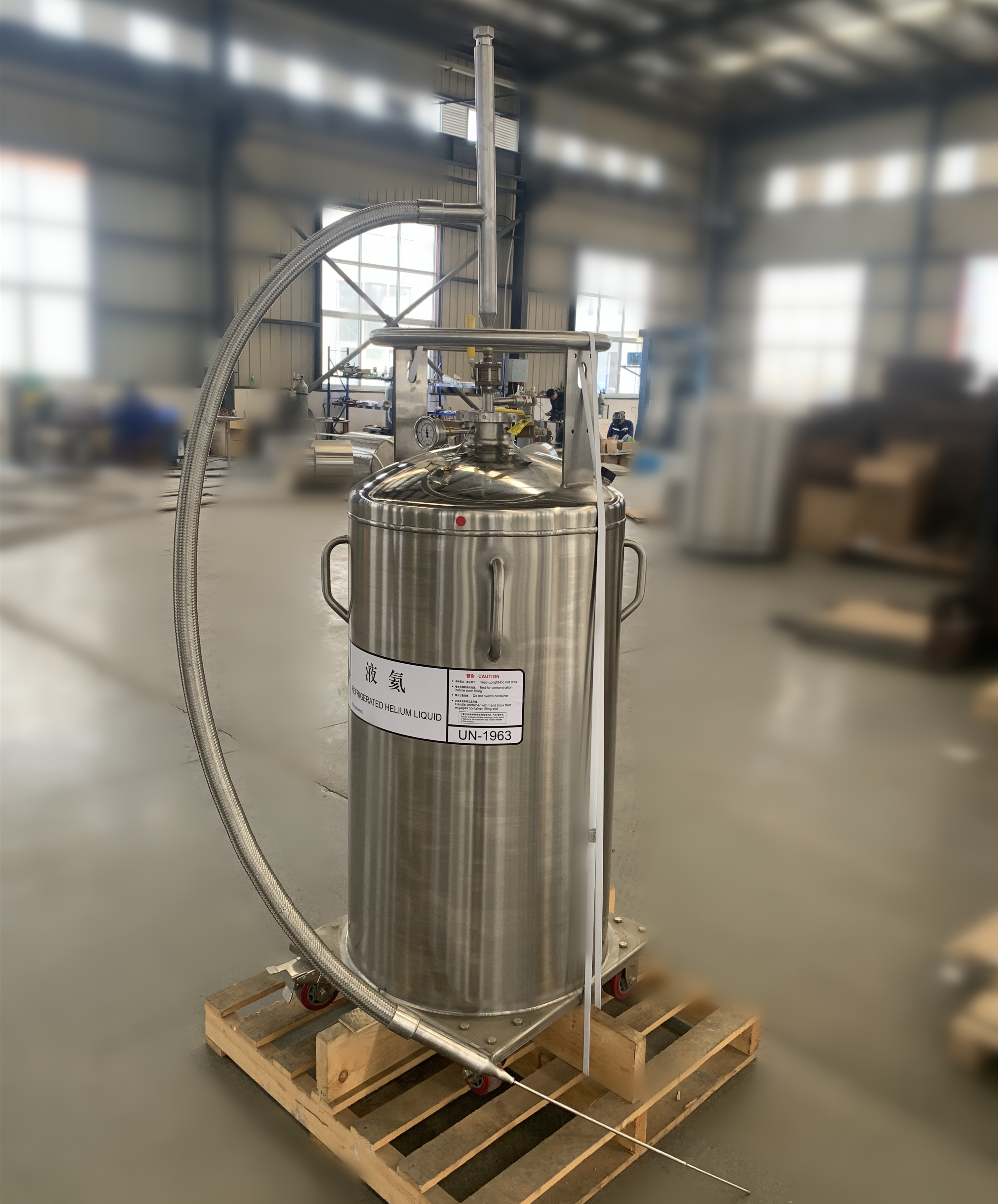 主要用來(lái)從大型液氦杜瓦瓶傳輸液氦至小型液氦杜瓦瓶,或者從用液氦杜瓦瓶為核磁做補(bǔ)液使用。根據(jù)客戶(hù)具體用途定制柔性管路和硬管具體長(zhǎng)度。